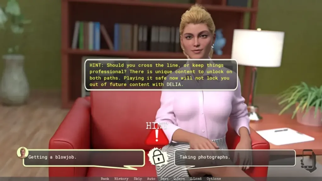 This quote is painfully accurate—in the best way possible. The game cleverly integrates your “camera” as a key tool. You’re not just a passive observer; you’re an active participant, sometimes nudged toward opportunities with a wink and a nudge. This mechanic blends the point and click adventure elements with the adult themes seamlessly. You’re not just clicking to advance; you’re “taking photos,” which becomes a delightful euphemism and a core part of progressing the story and relationships. It’s clever, it’s funny, and it makes you feel like a co-conspirator.